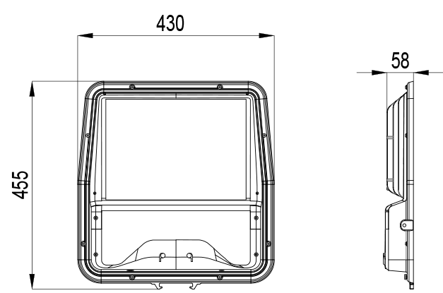 - 200W- 250W: 455x430x58 mm