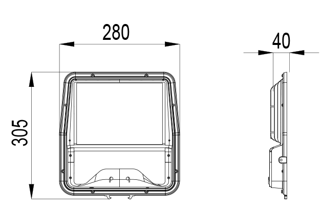- 53W: 305x280x40 mm,