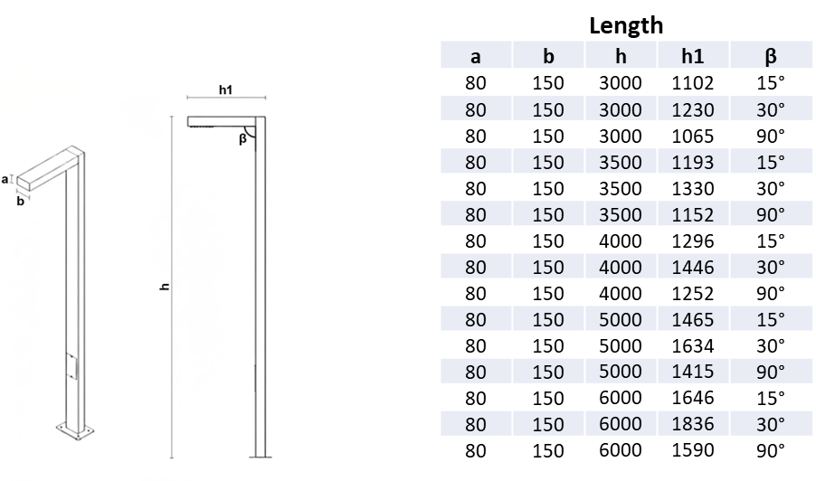 - Pole Height Options: 3 m – 3.5 m – 4 m – 5 m – 6 m