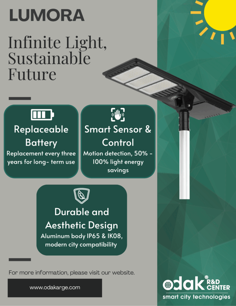 Lumora 9 is a lighting system that operates entirely on solar energy, independent of the city grid. With its modern design and high efficiency, it provides reliable and sustainable lighting in any environment.