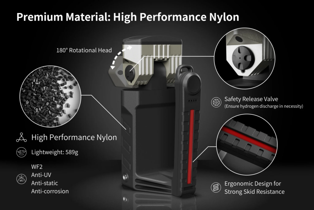 Kuyruk kısmında konumlandırma ışığı bulunur ve 5 renk özelleştirilebilir. Kabuk, kalıcı antistatik, hafif, düşmeye dayanıklı, korozyona dayanıklı, yağa dayanıklı ve diğer özelliklere sahip yüksek performanslı Naylondan yapılmıştır ve IP66/67 koruma seviyesine sahiptir.