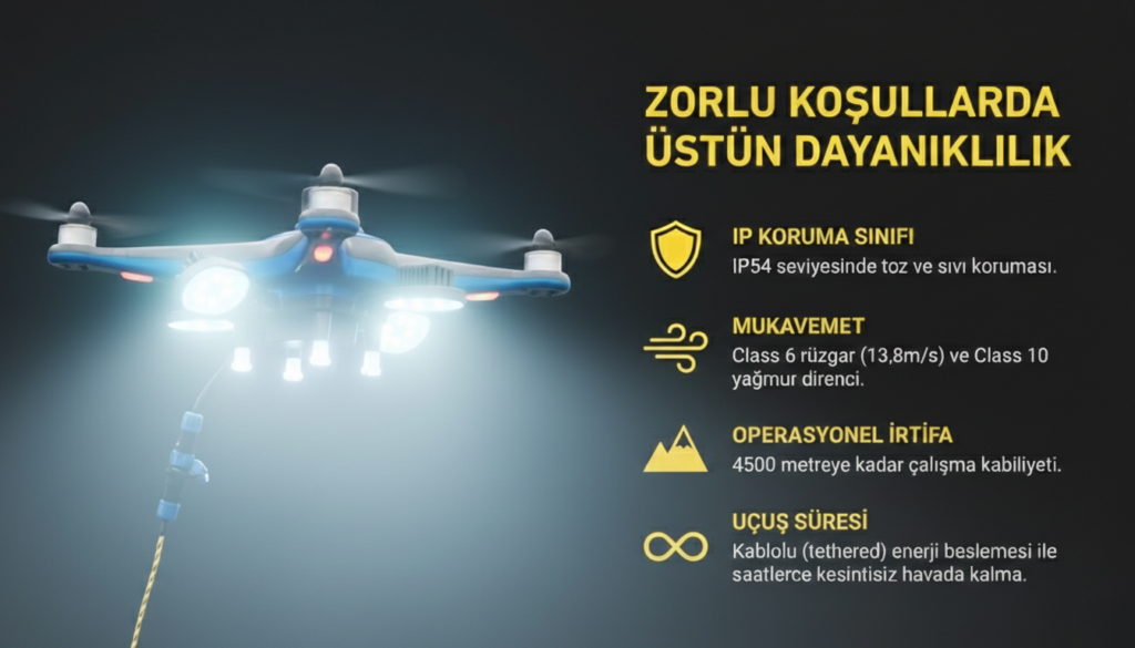 - Acil İniş Modu : Güç kesintisi veya düşük batarya durumunda dahili acil durum piliyle otomatik güvenli iniş yapar