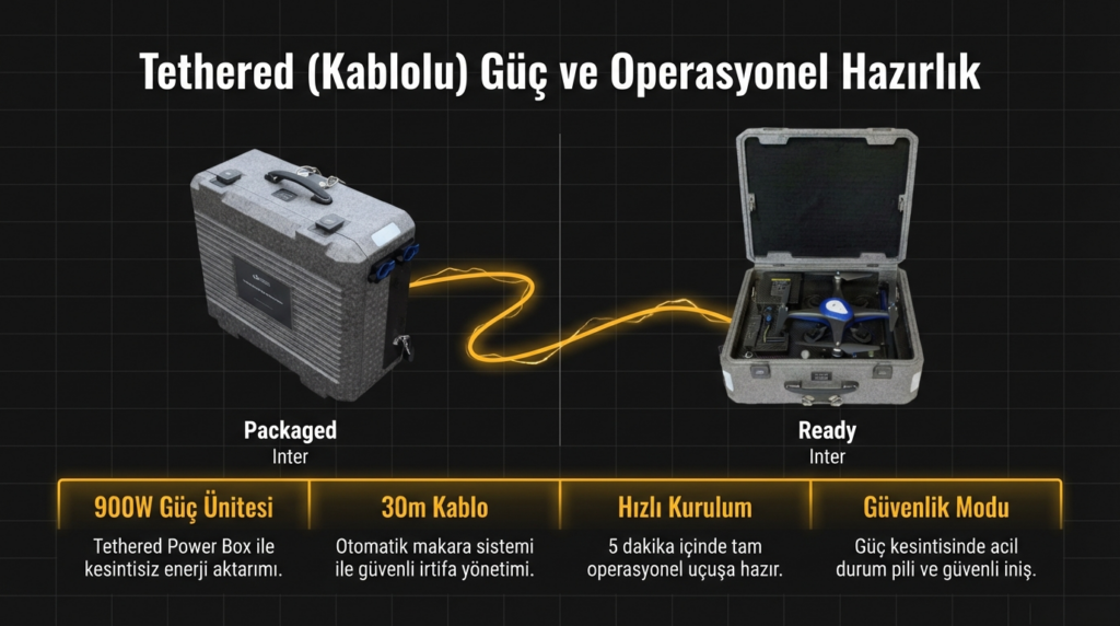 G5L+ olarak isimlendirilen İHA 30metre irtifaya kadar çıkabilmektedir. Güç ünitesine bağlı kumanda ile uçuşu sağlanabilmektedir. Profesyonel İHA pilotuna gerek kalmadan özel tasarlanmış kumandasıyla tek elle kontrol ve yönetim imkanı sağlar. Enerji kesildiğinde 5 dakika bataryadan enerji sağlanabilmekte ve bu özellik sayesinde kablo otomatik sargı sayesinde toplanabilmektedir. 110V ~ 220V şebeke gerilimi olmadığı durumlarda beşinci dakika sonunda otomatik kapanmaktadır. Güç ünitesi jeneratörler gibi hava akışı olan bir yerde muhafaza edilmelidir.