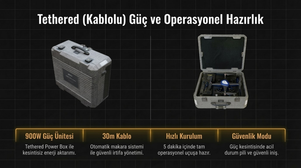G5L+ olarak isimlendirilen İHA 30metre irtifaya kadar çıkabilmektedir. Güç ünitesine bağlı kumanda ile uçuşu sağlanabilmektedir. Profesyonel İHA pilotuna gerek kalmadan özel tasarlanmış kumandasıyla tek elle kontrol ve yönetim imkanı sağlar. Enerji kesildiğinde 5 dakika bataryadan enerji sağlanabilmekte ve bu özellik sayesinde kablo otomatik sargı sayesinde toplanabilmektedir. 110V ~ 220V şebeke gerilimi olmadığı durumlarda beşinci dakika sonunda otomatik kapanmaktadır. Güç ünitesi jeneratörler gibi hava akışı olan bir yerde muhafaza edilmelidir.